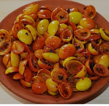 Karonda pickle is a spicy, tangy Indian condiment made from the tart, pinkish-white karonda berries (also known as Carissa carandas or Natal plum). It is often prepared with a blend of traditional spices and preserved in mustard oil, giving it a distinct, zesty flavor.